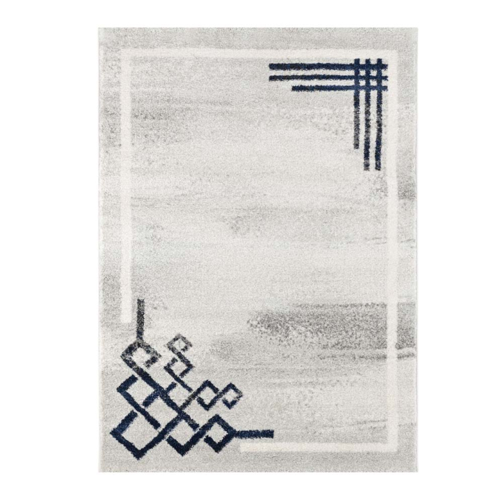 Килимът съчетава изчистен дизайн с модерни сини геометрични акценти. Елегантен и съвременен, което го прави подходящ за всяка спалня или всекидневна. Мек и приятен на допир, издръжлив и лесен за поддръжка.
