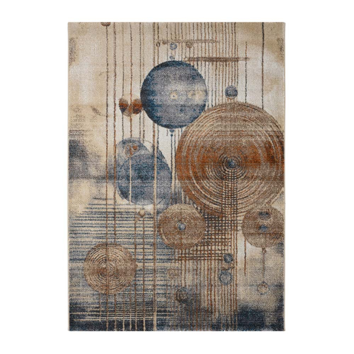 Пътеката е с модерен артистичен дизайн. Кръговите елементи, напомнящи годишни дървесни пръстени и небесни сфери, създават усещане за движение и хармония. Съчетанието на топлите бежови тонове и хладните сини нюанси придава елегантен баланс, подходящ както за съвременни, така и за по-класически интериори. Внася усещане за уют и изтънченост.