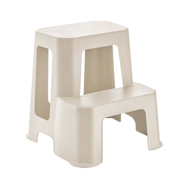 Бежово пластмасово столче-стълба с размер 42.7/44.2/44.2 см.