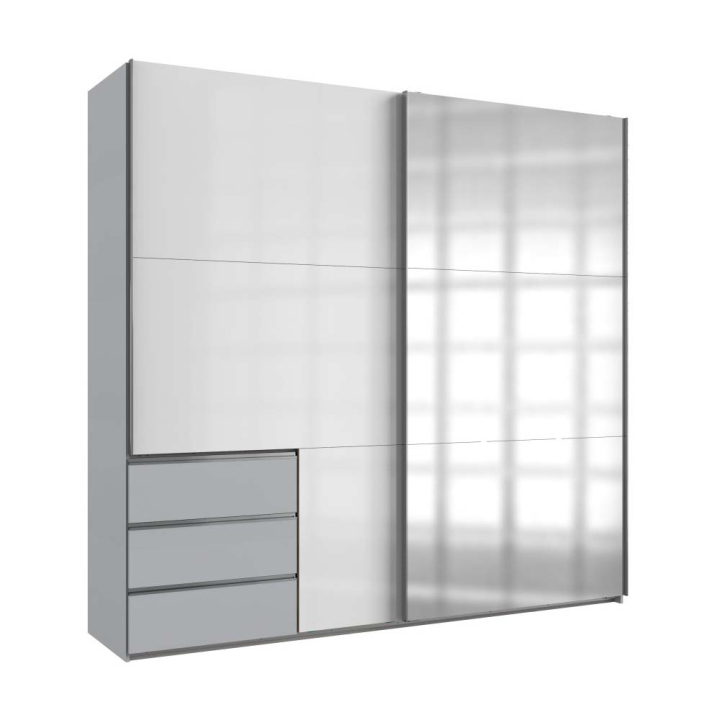 ГАРДЕРОБ С ПЛЪЗГАЩИ ВРАТИ, 3 ЧЕКМЕДЖЕТА И ОГЛЕДАЛО ЛЕВЪЛ-36 250/65/236 СМ