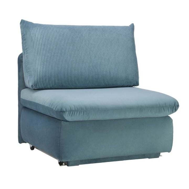 Разтегателен фотьойл с размери Ш:90/Д:83/В:89 см. С модерна визия, акцентиращи обемните възглавници, едната от които с кадифена дамаска. Пълнеж от пяна върху дървени лайсни. Моделът е много практичен, като само с издърпване на седалката, фотьойлът лесно може да обособи площ за сън с размери 80/196 см. Разполага и с практична ракла под седалката, за удобното съхранение на вещи или завивки.