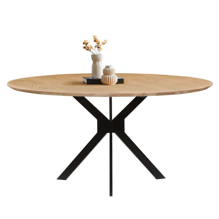 Кръгла трапезна маса Милано с плот от масив дъб масив, размери: 150/150/76 см