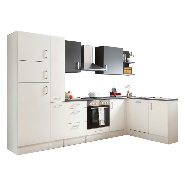 Термоплотът с дебелина 28 мм в антрацит придава здравина и устойчивост, а добре проектираната конфигурация предоставя не само функционалност, но и комфорт при работа в кухнята. Размерите на конфигурацията – 310+170/60/211 см, правят кухнята подходяща за различни по големина пространства, осигурявайки изобилие от място за съхранение и удобство при използване.