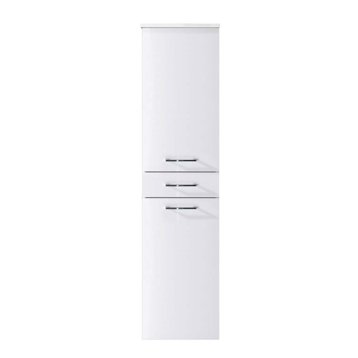 Висок конзолен шкаф с размери Ш:40/Д:35/В:160 см. Притежава модерен дизайн и функционално разпределение от две отделения с вратички и едно чекмедже. Шкафът е изработен от ПДЧ с меламиново покритие, в бял цвят и врати от MDF в бял гланц. Предоставя удобно съхранение на кърпи, тоалетни принадлежности и аксесоари. Всичко, от което се нуждаете сутрин в банята ще е на една ръка разстояние.
