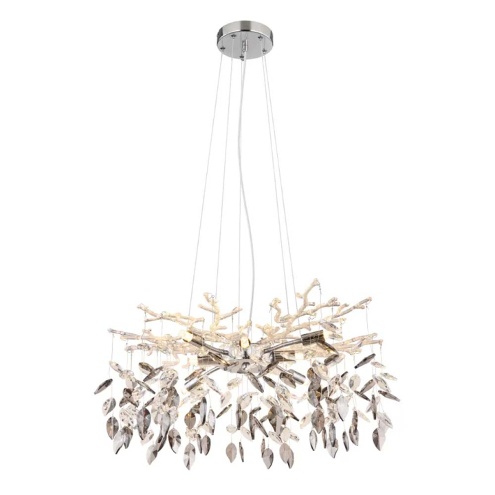 Полилеят придава луксозен вид на всеки интериор. Изработен от метал и е декориран с кристали от стъкло. Комбинацията придава на полилея класически и вечен дизайн. С диаметър Ф61 см и осем източника на светлина (не са включени в комплекта), той се вписва идеално в големи помещения, като трапезарии или дневни. Играта на светлината върху кристалите създава магическа атмосфера и бляскава обстановка. Позволете си да се омагьосате от този блясък и превърнете стаята си в място на лукс и елегантност.