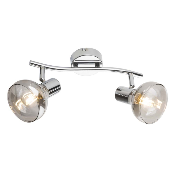Сребрист спот с абажури от опушено стъкло, 2x40W, E14, 230V, 8/28/16 см