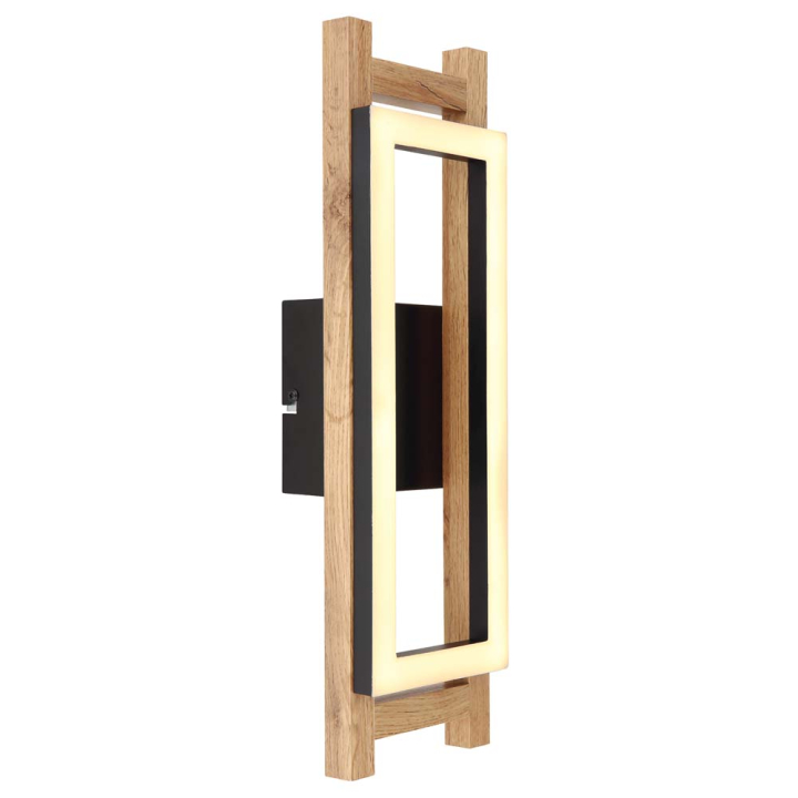LED аплик в черно и дървесно с геометричен дизайн, 10W, 3000K, 400LM, 13.5/7.5/45 см