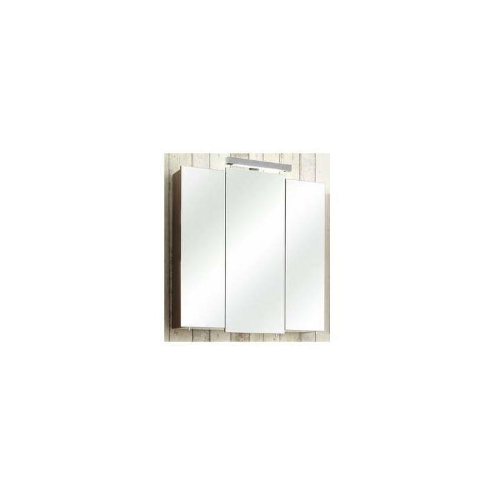 Горен шкаф за баня Ритер с огледални врати и LED осветление в декор дъб сан ремо, размери: 68/20/73 см