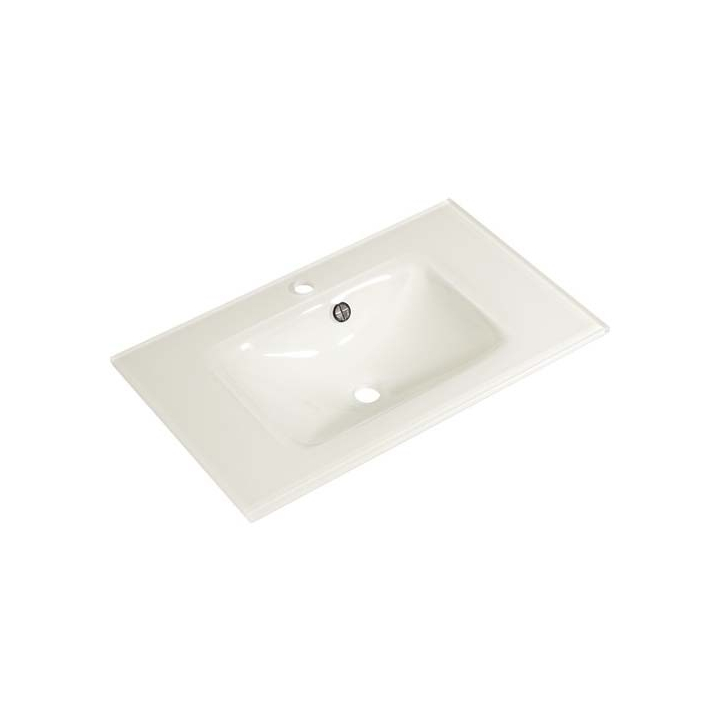 Стъклена мивка в бял цвят, с изчистен правоъгълен дизайн и елегантни плавни ппреходи