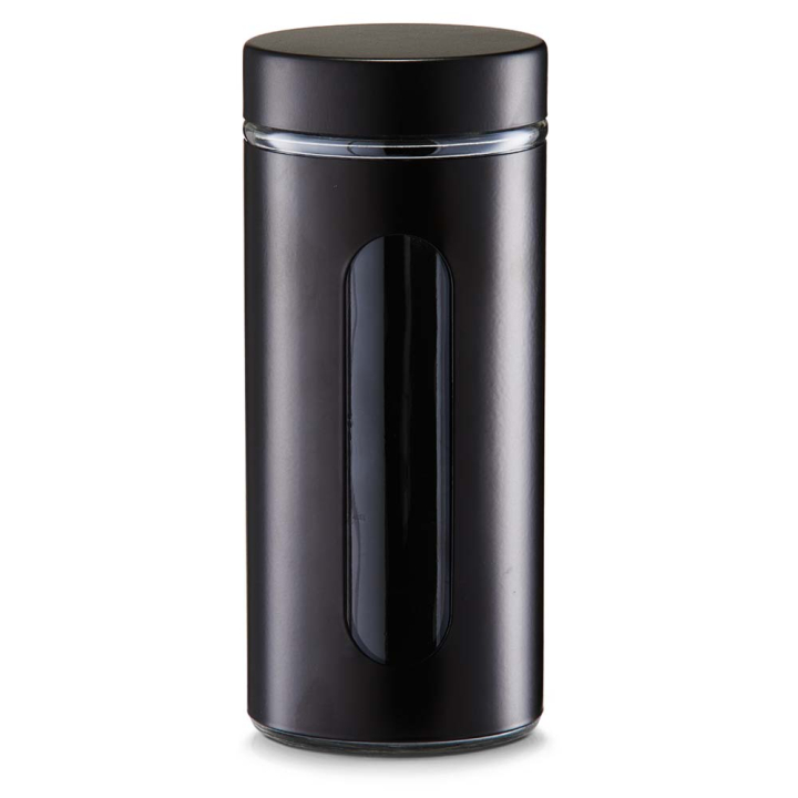 Черен метален канистер с прозорче и винтов капак, 1.2 л, 10.2/10.2/23 см