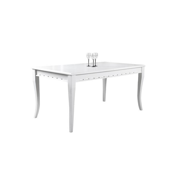 Дизайнерска трапезна маса с разтегателен плот с размери Ш:160-200/Д:90/В:75 см. Моделът се характеризира с елегантни извивки и красива форма на краката, както и стилно фрезован плот по периферията. Трапезната маса може да настани удобно от 6 до 8 човека за комфортната консумация на храни и напитки. Притежава красива бяла декорация, която със сигурно ще се впише към интериора на повечето дневни или трапезарии и ще внесе много свежест и чистота към помещението.