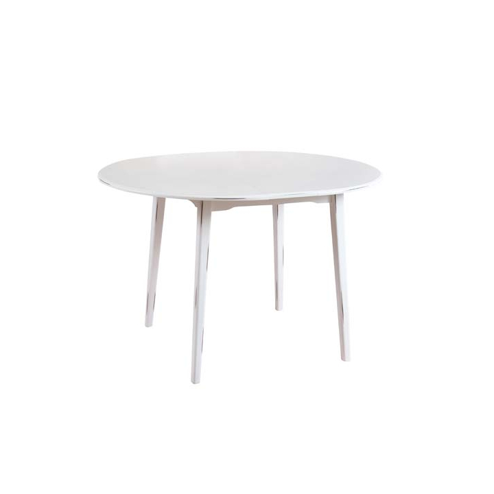 Кръгла разтегателна маса с размери Ф110-135/78 см. Овалният плот е произведен от MDF с покритие от естествен фурнир с ефект състарено бяло, поставен на четири дървени правоъгълни крака. Трапезната маса е с капацитет за комфортно хранене от 4 до 6 човека. Със своята овална форма и бяла текстура със сигурно ще внесе много чар и уют в трапезарията.