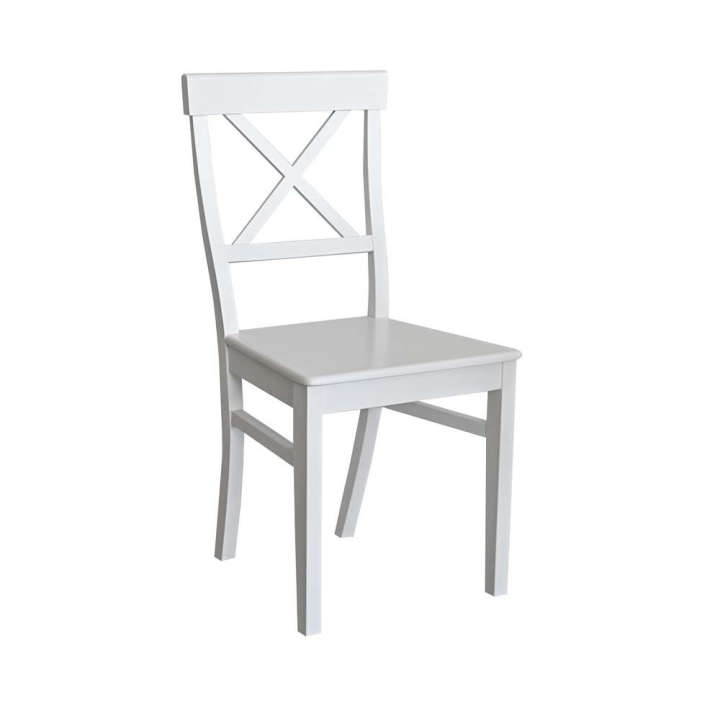 Изработен от висококачествена букова дървесина, столът се отличава със своята здравина и стабилност. Изящното бяло покритие добавя свежест и елегантност, позволявайки му да се впише хармонично във всякакъв интериорен стил. Благодарение на удобната конструкция и класическата кръстосана облегалка, този стол осигурява оптимален комфорт за дълги вечери, изпълнени с приятни разговори със семейство и приятели.