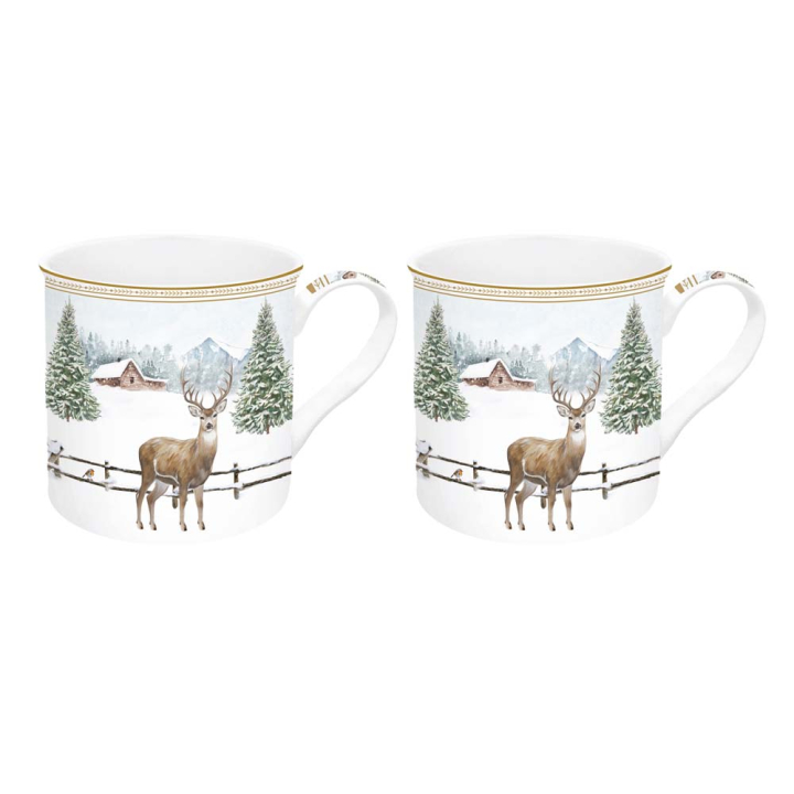 Комплект 2 бр. чаши за топли напитки със зимни горски мотиви 300 мл, опаковани в подаръчна кутия