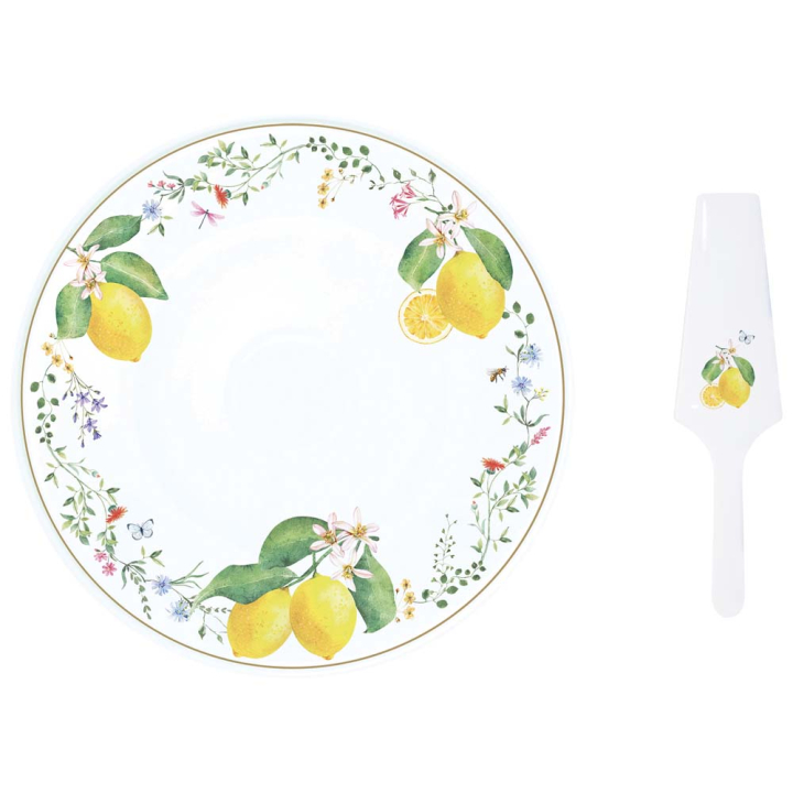Цветен сет плато и шпатула за торта с декорация лимони, опаковани в подаръчна кутия, Ф32 см