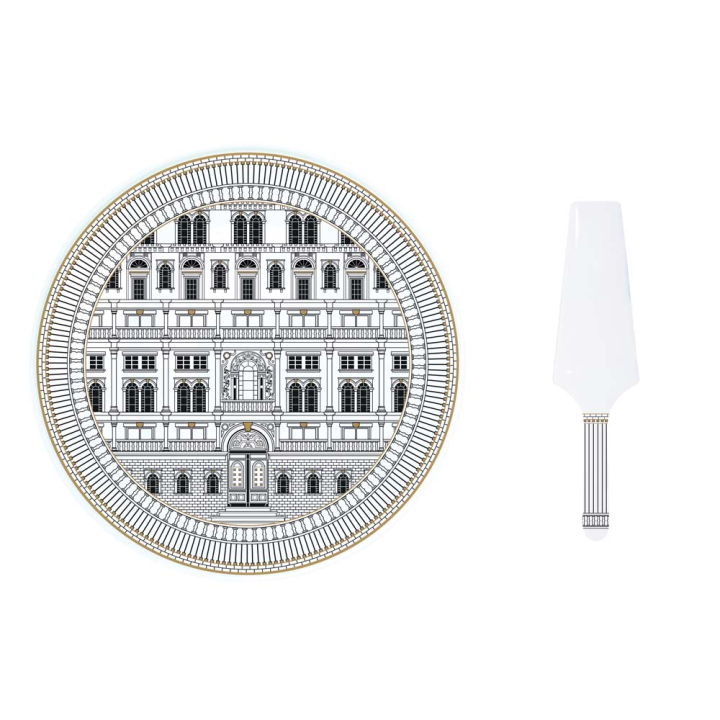 Комплект плато и шпатула за торта с артистичен мотив царски дворец, Ф32 см