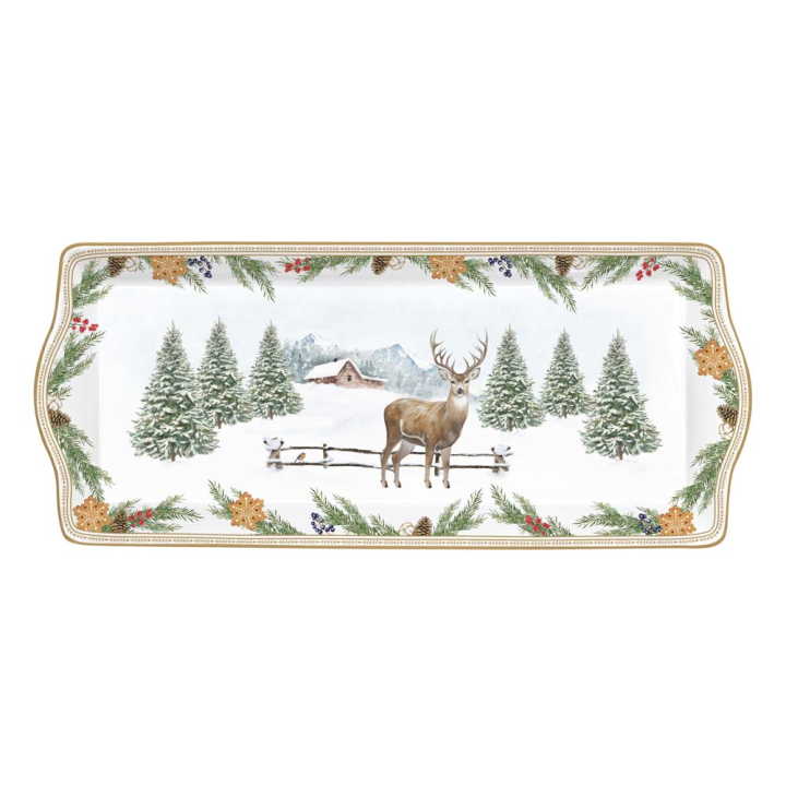 Порцеланово плато със зимни горски мотиви в красива подаръчна кутия, 35/15 см
