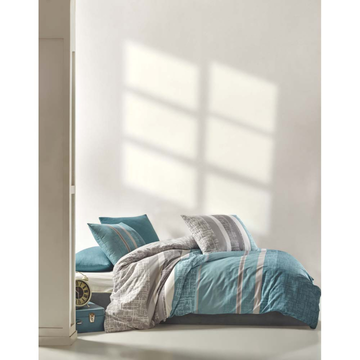 Спален комплект от 5 части с два плика в цветова комбинация на сиво и синьо.