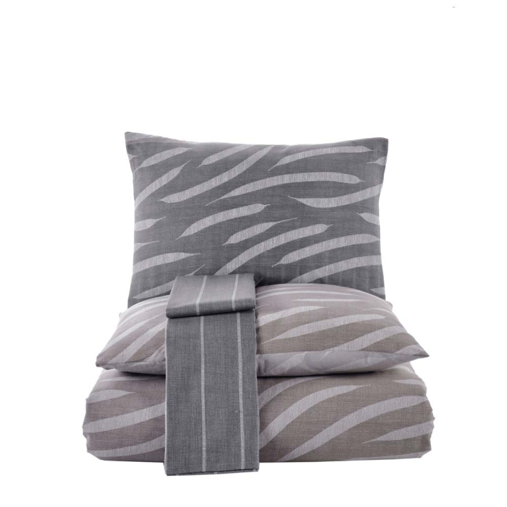 Спален комплект от 3 части с елегантен дизайн в кафяво и сиво, 100% памук ранфорс