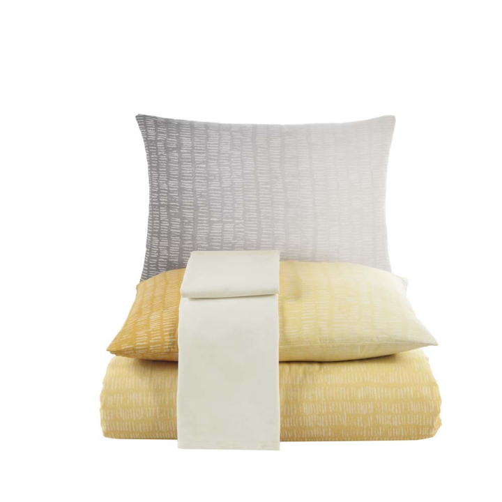 Комплектът е със свежи нюанси и модерна комбинация на цветовете. Жълто-оранжевата гама носи усещане за чистота и обгръща с уютна мекота. Текстилната материя е устойчива към честа употреба и многократни изпирания. При внимателно следване на инструкциите за третиране, спалното бельо ще съхрани красивия външен вид дълготрайно.
