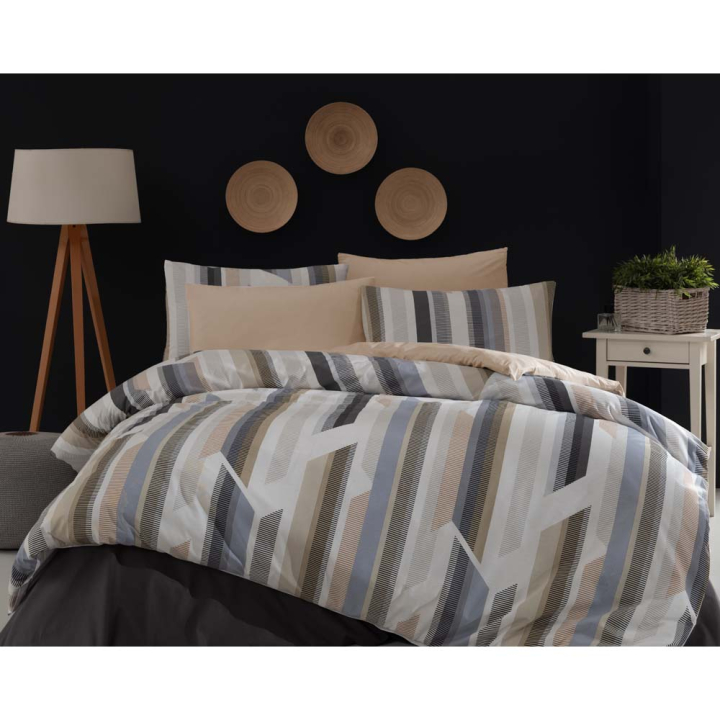 Спален комплект от 3 части с елегантен цветен дизайн, 100% памук ранфорс
