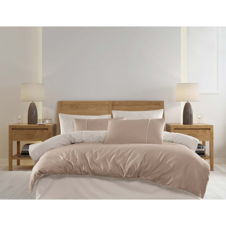 Елегантен спален комплект от 7 части в бежово, 100% сатениран памук