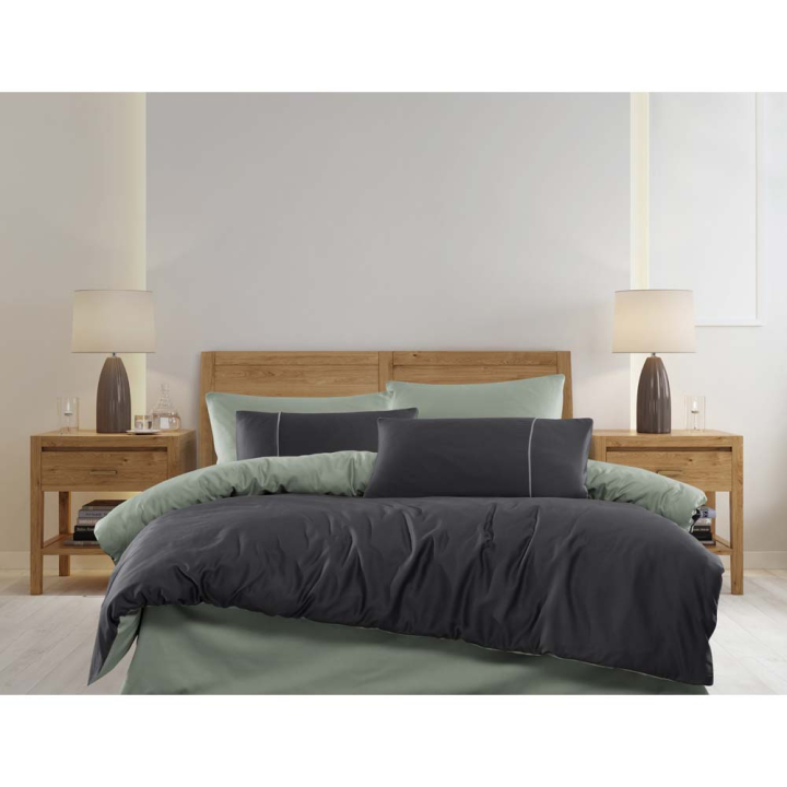 Спален комплект от 7 части в черно и зелено, 100% сатениран памук