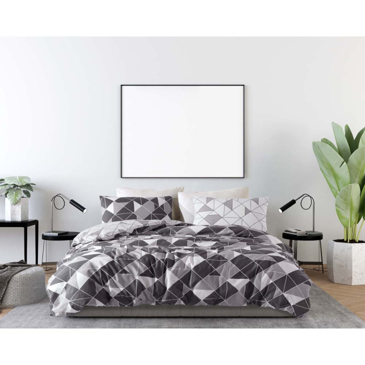 Спален комплект от 5 части с геометричен дизайн, 100% памук Ранфорс