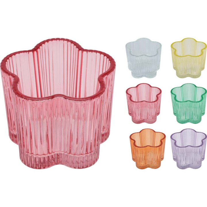 FLOWER СТЪКЛЕНА ПОСТАВКА ЗА СВЕЩ 17.5/7.8 СМ АСОРТИ 30358010724