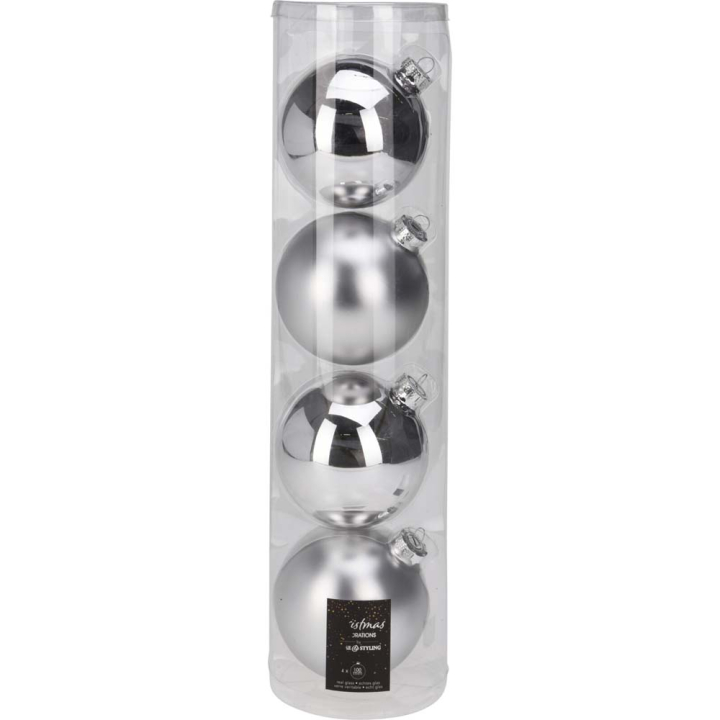 СЕТ 4 БР. КОЛЕДНИ ТОПКИ СРЕБРИСТ D:10 СМ