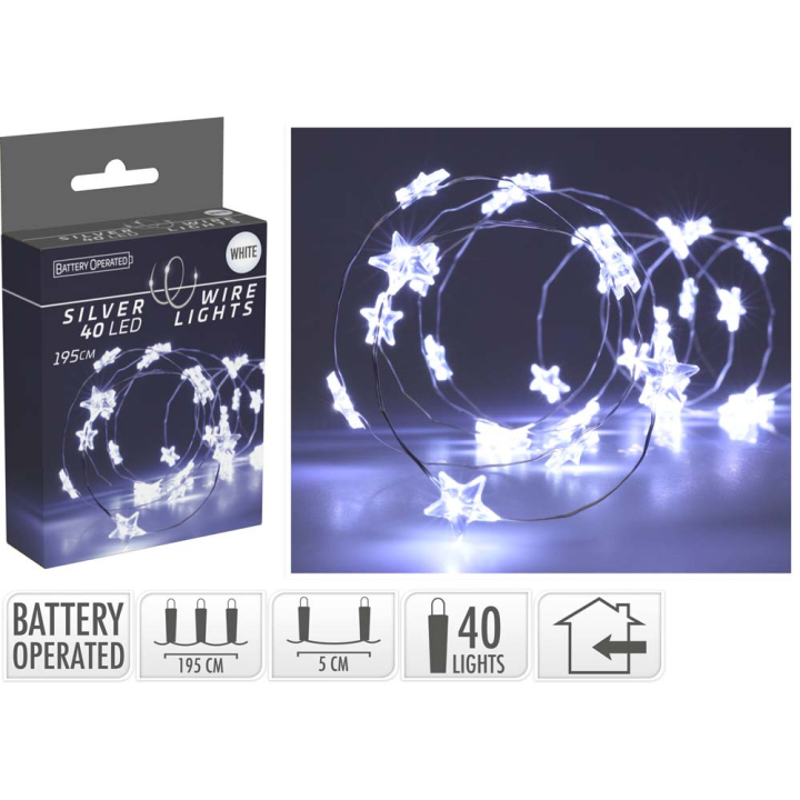 40 LED КОЛЕДНО ОСВЕТЛЕНИЕ НА БАТЕРИИ ЗВЕЗДИ 195 СМ 30370012957