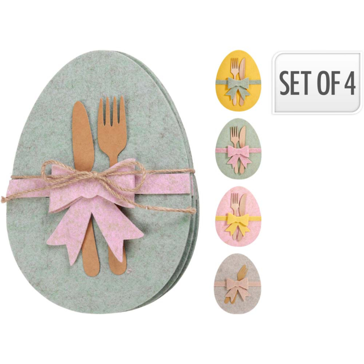EGG СЕТ 4 БР. ВЕЛИКДЕНСКА ПОДЛОЖКА ЗА ПРИБОРИ С ВИЛИЦА И НОЖ 15.5/21/6 СМ АСОРТИ