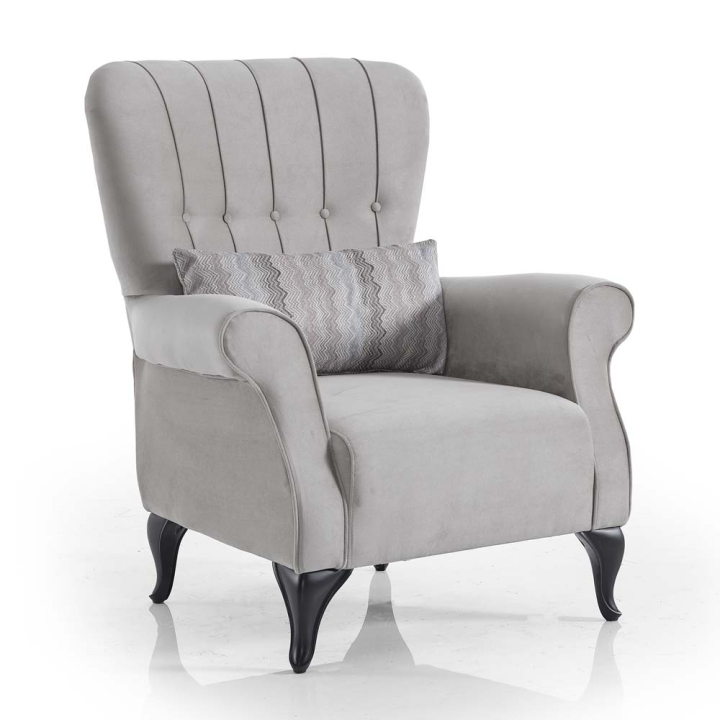 Фотьойлът Ибиза е създаден да допълни интериора с усещане за комфорт и изисканост. Неговата форма, вдъхновена от класическия стил, съчетава меки линии, висок капитониран гръб и деликатно извити подлакътници. Благодарение на приятната на допир бежова дамаска и меката седалка, този фотьойл е идеалното място за релакс с книга или чаша кафе.