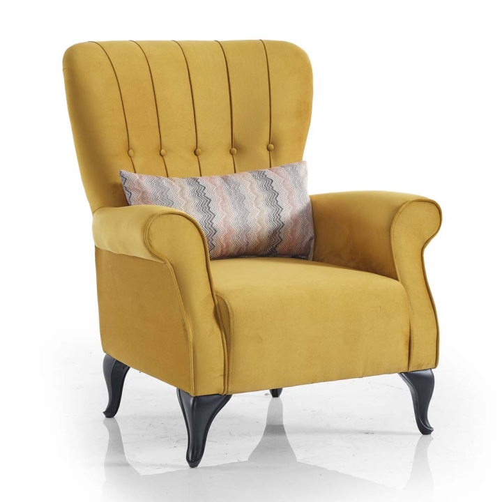 Жълт фотьойл Ибиза с подлакътници и декоративна възглавница, размери: 85/85/104 см