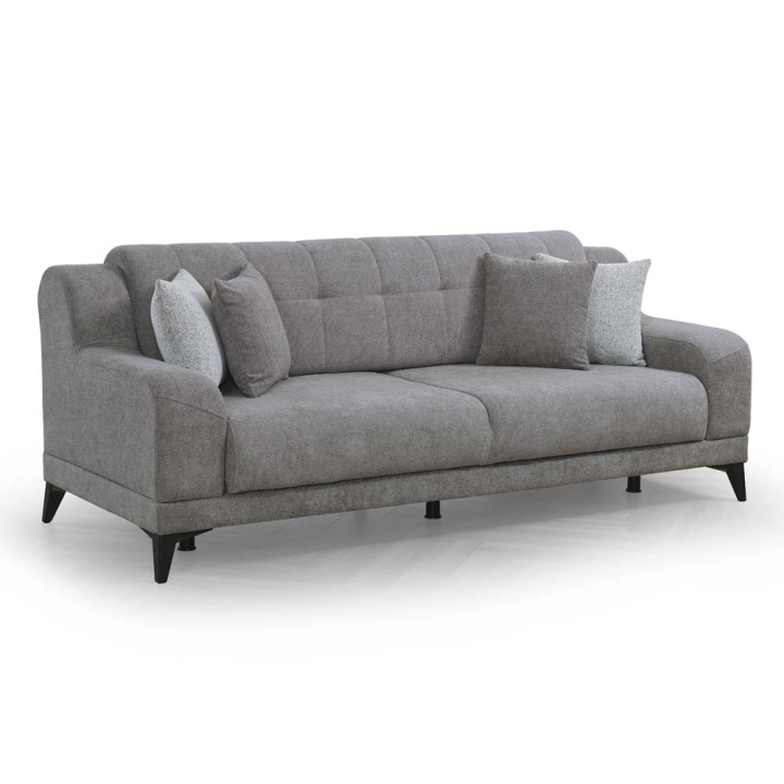Сив триместен диван Монтес с функция сън, ракла и включени 2 декоративни възглавници, размери: 220/88/87 см