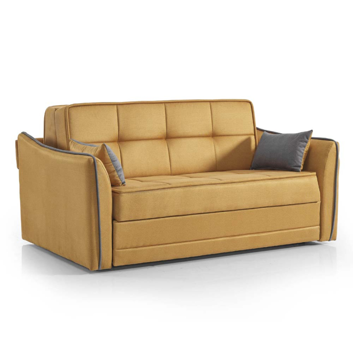 Стил, удобство и многофункционалност. Канапето Сантяго е перфектното решение за модерния дом, където комфортът и практичността вървят ръка за ръка. С дамаска в цвят горчица, стабилна конструкция и лесен механизъм за разтягане, този модел е създаден, за да осигури максимално удобство както за ежедневна употреба, така и за посрещане на гости. Със своя изчистен дизайн и топъл цвят, Сантяго без усилие се вписва в различни интериорни стилове - от скандинавски минимализъм до по-класически уют.
