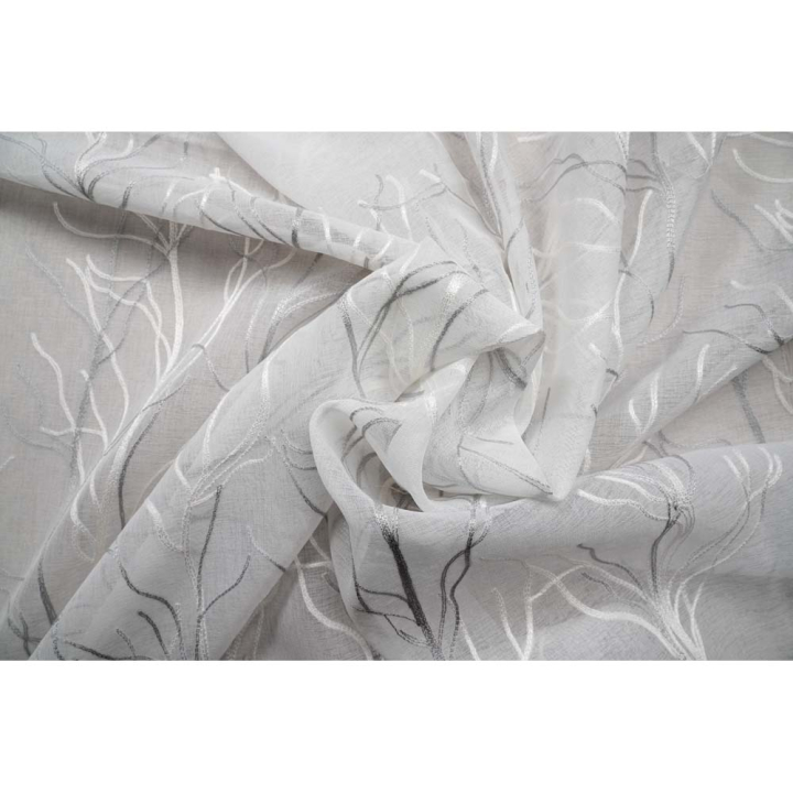 Тънък сив плат за завеси с нежна бродерия клончета, 280 см