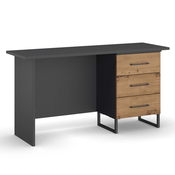 Бюро Бют с 3 чекмеджета в декори антрацит и светъл дървесен, размери: 140/50/75 см