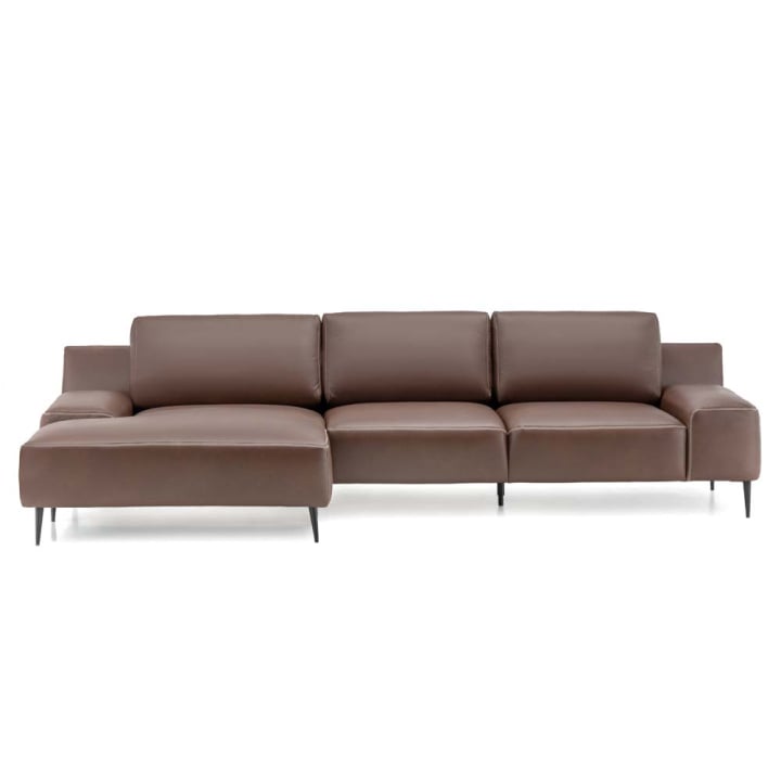 Холна гарнитура Форма не просто се вписва в интериора, тя доминира с елегантно присъствие. Кафявата естествена кожа гали сетивата със своята мекота и топлина, докато контрастният шев и изчистените линии подчертават неговия изискан характер. Ъгловият силует и лежанката създават усещане за уют, а включените възглавници придават допълнителен комфорт и финален щрих на композицията. Идеална за просторна дневна, гарнитурата е създадена да бъде централната сцена на дома, независимо дали търсите кът за отдих или удобна зона за споделени моменти, тя ще ви даде и двете с лекота и класа.