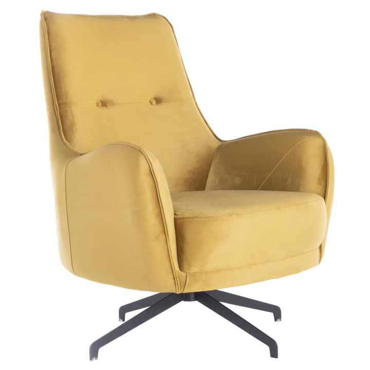 Жълт фотьойл Манчестър с подлакътници и въртящ механизъм с включена декоративна възглавница, размери: 80/85/100 см