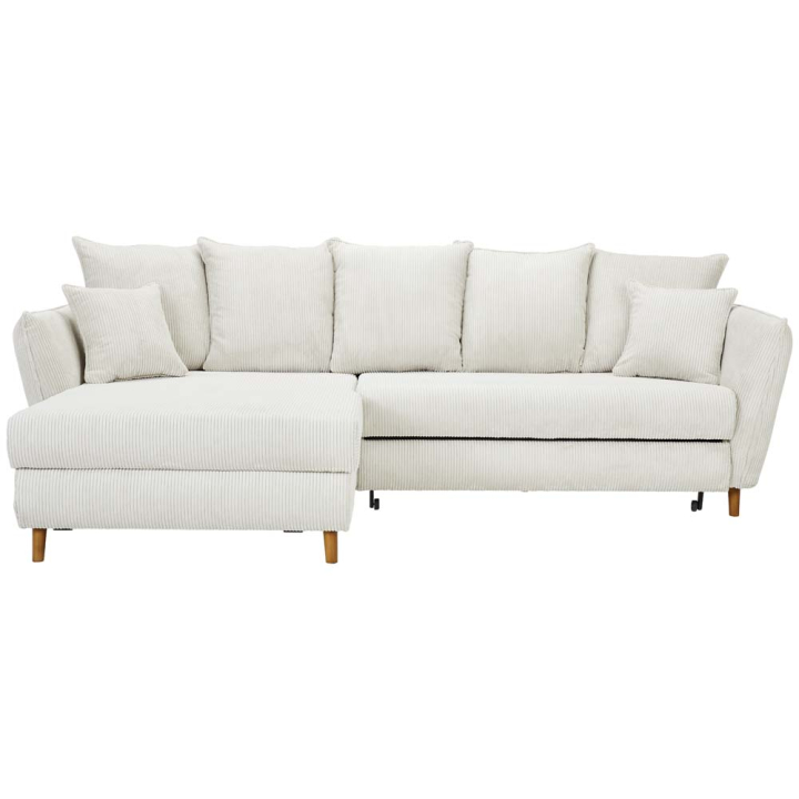 Бежова ъглова холна гарнитура Сантана с лява/дясна лежанка, функция сън с площ: 144/233 см и ракла, габаритни размери: 284/162/100 см