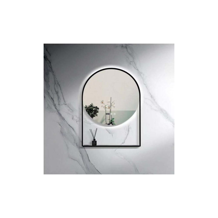 ОГЛЕДАЛО ЗА БАНЯ МАКЕНА 601 С LED ОСВЕТЛЕНИЕ, РАФТ И ЧАСОВНИК 60/12/80 СМ