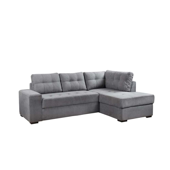 Функционална и удобна ъглова холна гарнитура с размери Ш:242/Д:170/В:92 см. Притежава лежанка, обширна ракла, както и механизъм за преобразуване на меката мебел в легло с площ за сън 190/135 см. Възглавниците на дивана са меки и удобни с пълнеж от PU пяна, идеално местенце за гледане на телевизия или четене на книга през свободното време. Сгушени на дивана, времето ще минава неусетно в приятна домашна атмосфера.