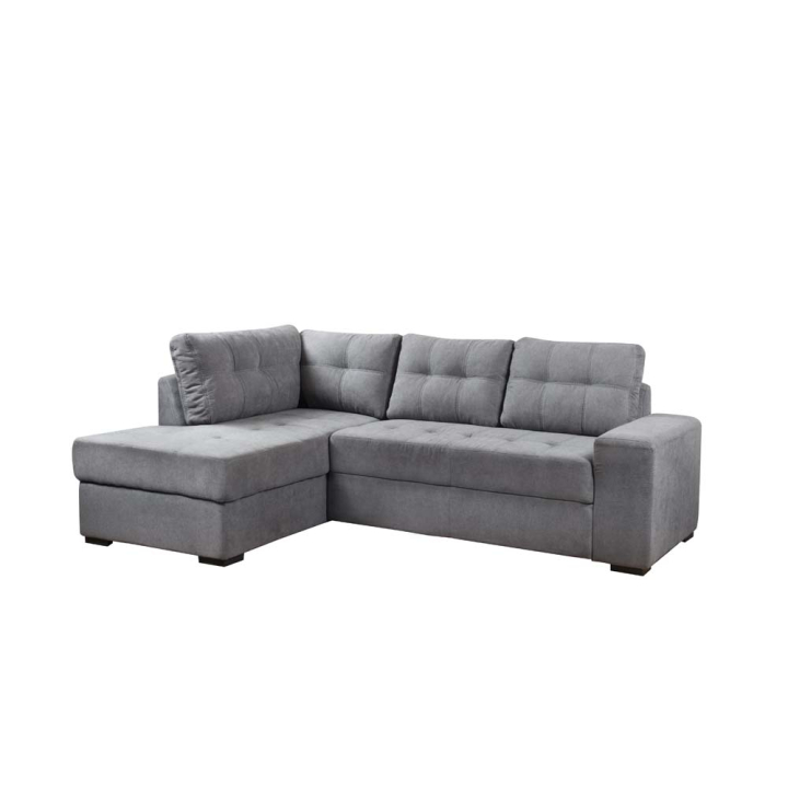 Функционална и удобна ъглова холна гарнитура с размери Ш:242/Д:170/В:92 см. Притежава лежанка, обширна ракла, както и механизъм за преобразуване на меката мебел в легло с площ за сън 190/135 см. Възглавниците на дивана са меки и удобни с пълнеж от PU пяна, идеално местенце за гледане на телевизия или четене на книга през свободното време. Сгушени на дивана, времето ще минава неусетно в приятна домашна атмосфера.
