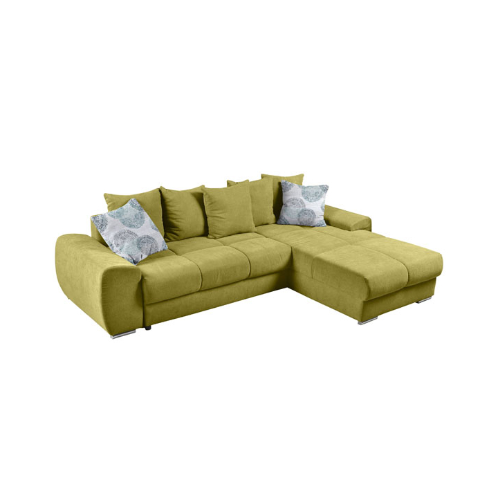 Комфортна, мека и функционална холна гарнитура за отдих и релакс с размери - Ш:271/Д:181/В:88 см. Със своите обемни възглавници за облягане създава приятна домашна атмосфера. Насладете се на дълги уютни нощи или мързеливи дни, сгушени на дивана. Идеално местенце за гледане на телевизия или четене на книга през свободното време. Притежава лежанка, ракла, както и възможност за обособяване в легло с площ за сън 205/138 см. Конструкцията е изработена от ПДЧ и масивна дървесина, стилно тапицирана с висококачествена дамаска в един цвят. Включени пет възглавници за облягане, както и две декоративни възглавници в акцентен цвят.
