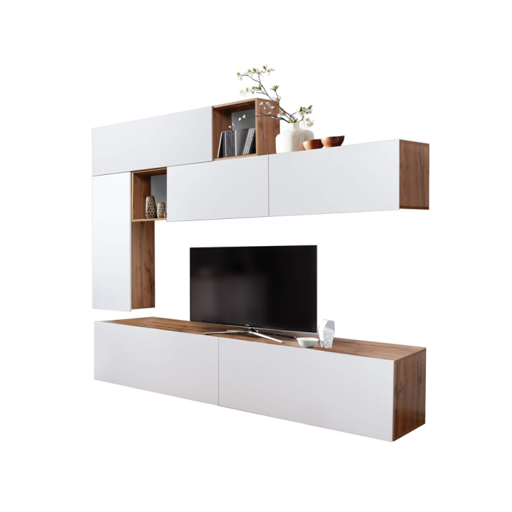 Стилна и модерна холна секция. Великолепното съчетание на цветове бял гланц и дъб вотан прави този модел великолепен избор за вашия дом.