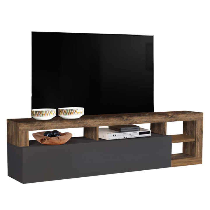 Дизайнът и концепцията са базирани на модерния урбанистически стил, съчетаващ полица в декор - витидж и шкаф с 1 врата, в цвят антрацит. Тази изразена симбиоза създава разчупеност и идивидуална визия на помещението.