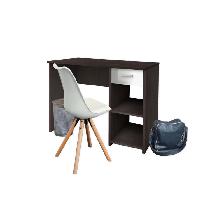 Бюро с чекмедже с размери Ш:90/Д:50/В:75 см. Плотът на бюрото е достатъчно голям за поставянето на лаптоп, а на рафта под чекмеджето може да съхранявате всякакви канцеларски принадлежности и пособия. Подходящо обзавеждане за дома и офиса. Моделът е със здрава конструкция произведена от ПДЧ.