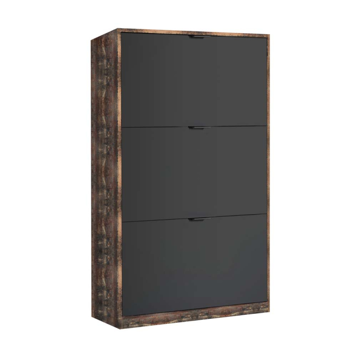 Шкаф за обувки Йоро 3 в тъмен дървесен декор и антрацит, размери: 64/19/120 см