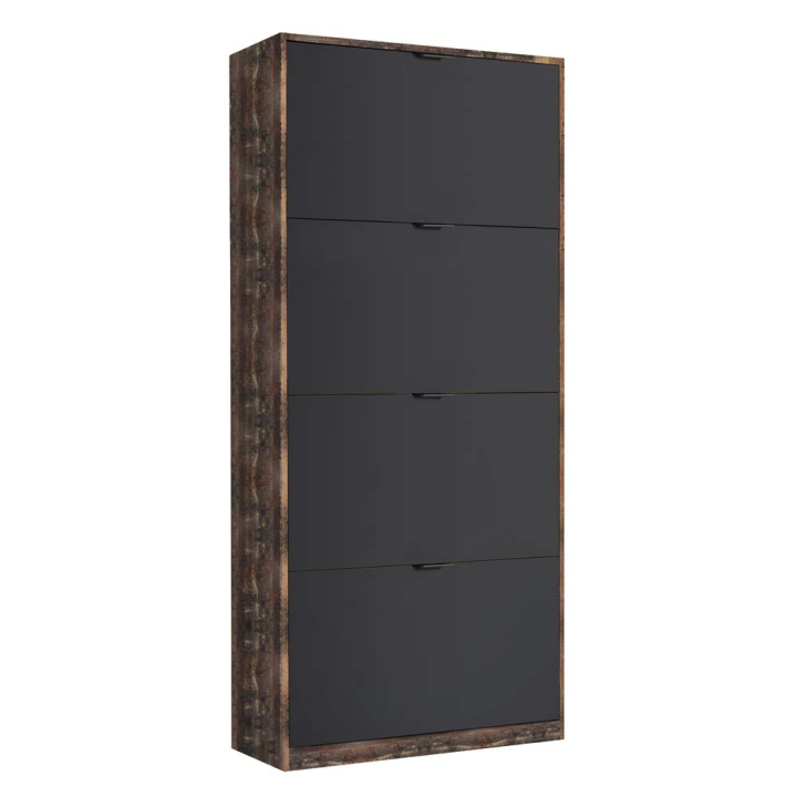 Шкаф за обувки Йоро 4 в тъмен дървесен декор и антрацит, размери: 64/19/157 см